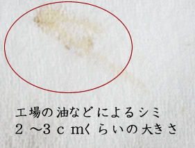 こんなシミやパイル落ちが、一割満たない程度で入っている場合がございますのでご了承の上ご注文下さい